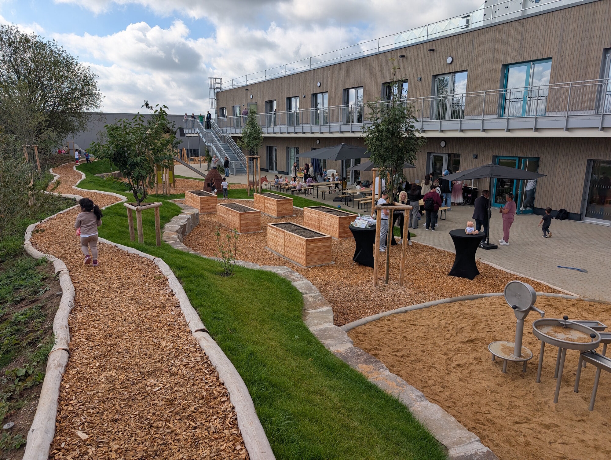 Moderne Außenanlage lädt Kita-Kinder zum Spielen ein