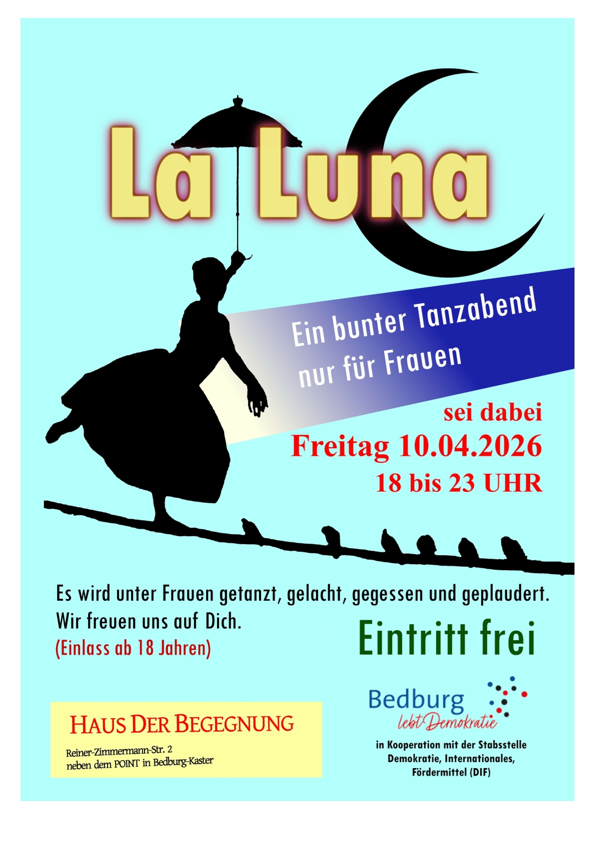La Luna begrüßt den Frühling: Ein internationaler Frauenabend mit Musik und Essen aus aller Welt findet im Haus der Begegnung statt. Das Wort Begegnung ist auch für La Luna ein wichtiger Aspekt. Es kann sich ausgetauscht werden, Freundschaften geknüpft oder neuen Ideen einen Raum geben.