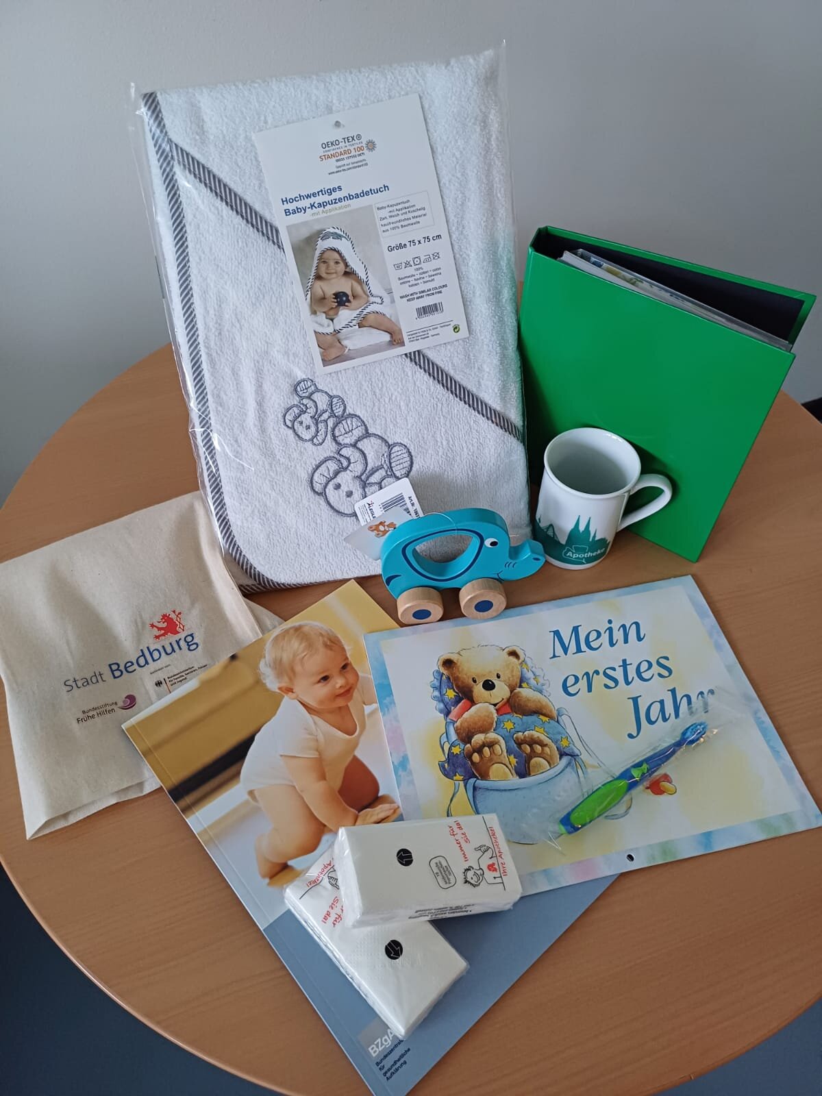 Alternativ dazu können Sie auch immer einen Termin in den Räumen der Frühen Hilfen im Bedburger Rathaus vereinbaren, um miteinander ins Gespräch zu kommen und sich dort das Babybegrüßungspaket persönlich abzuholen. Das Paket bietet auch immer einen Rabattgutschein für den Erste-Hilfe-Kurs am Kind des Malteser Hilfsdienstes.