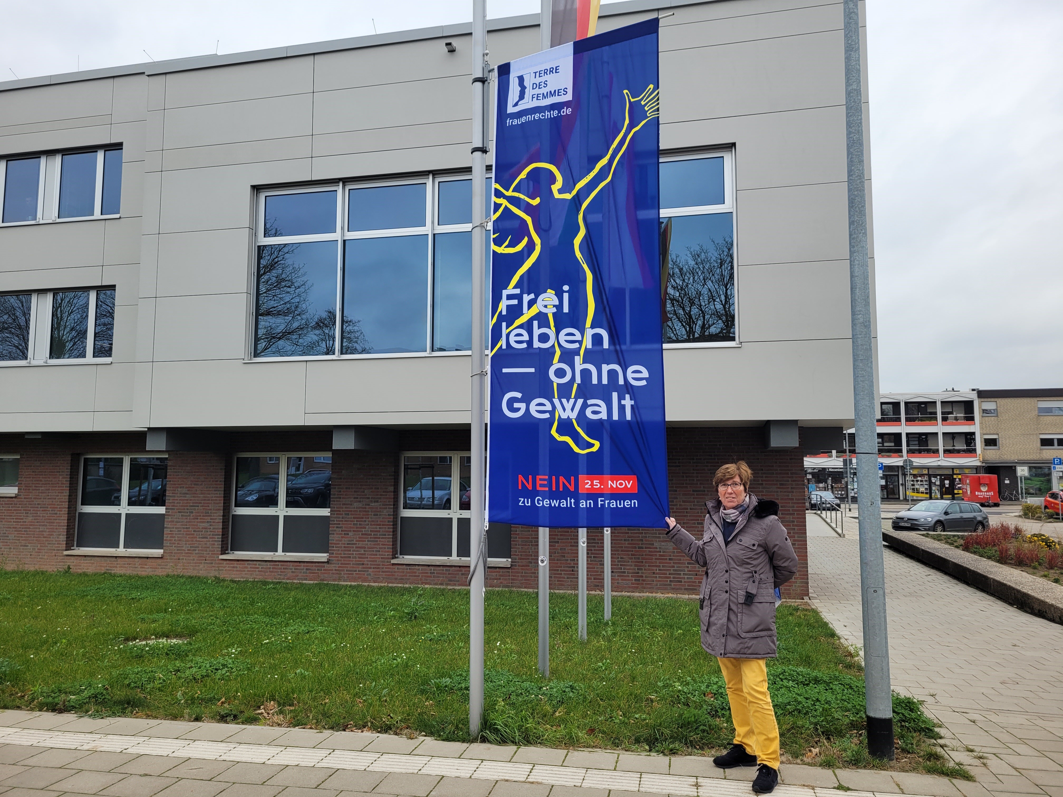 NEIN zu Gewalt an Frauen: Bedburg zeigt Flagge
