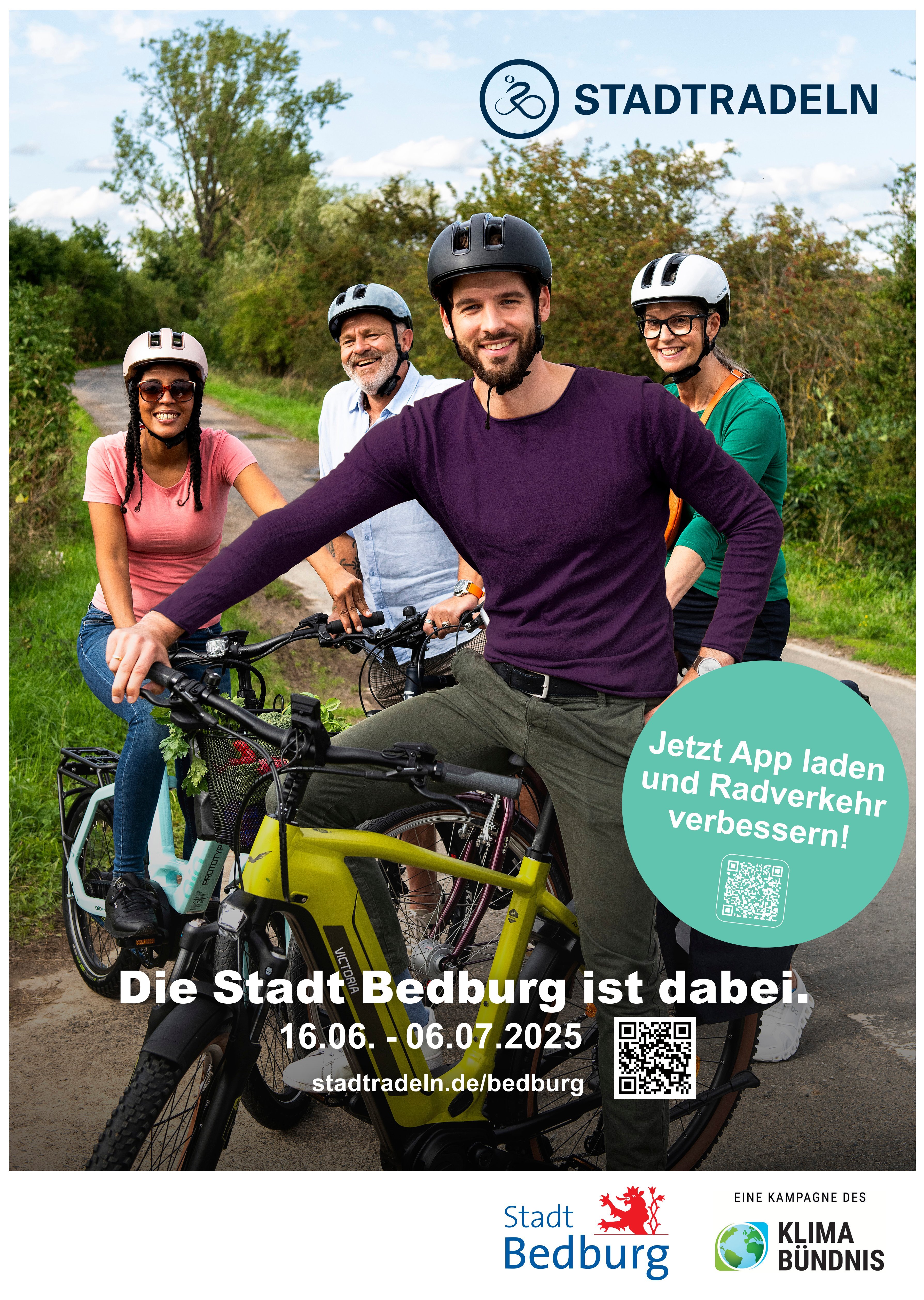Bereits zum dritten Mal in Folge nimmt die Stadt Bedburg an der Klima-Bündnis-Kampagne STADTRADELN teil. Vom 16. Juni bis zum 6. Juli 2025 sind alle Bedburgerinnen und Bedburger erneut dazu aufgerufen, möglichst viele Wege klimafreundlich mit dem Fahrrad zurückzulegen. Dabei können sie drei Wochen lang Kilometer für ihr Team und ihre Kommune sammeln. Am Ende warten in der Einzel- und Teamwertung tolle Preise.
