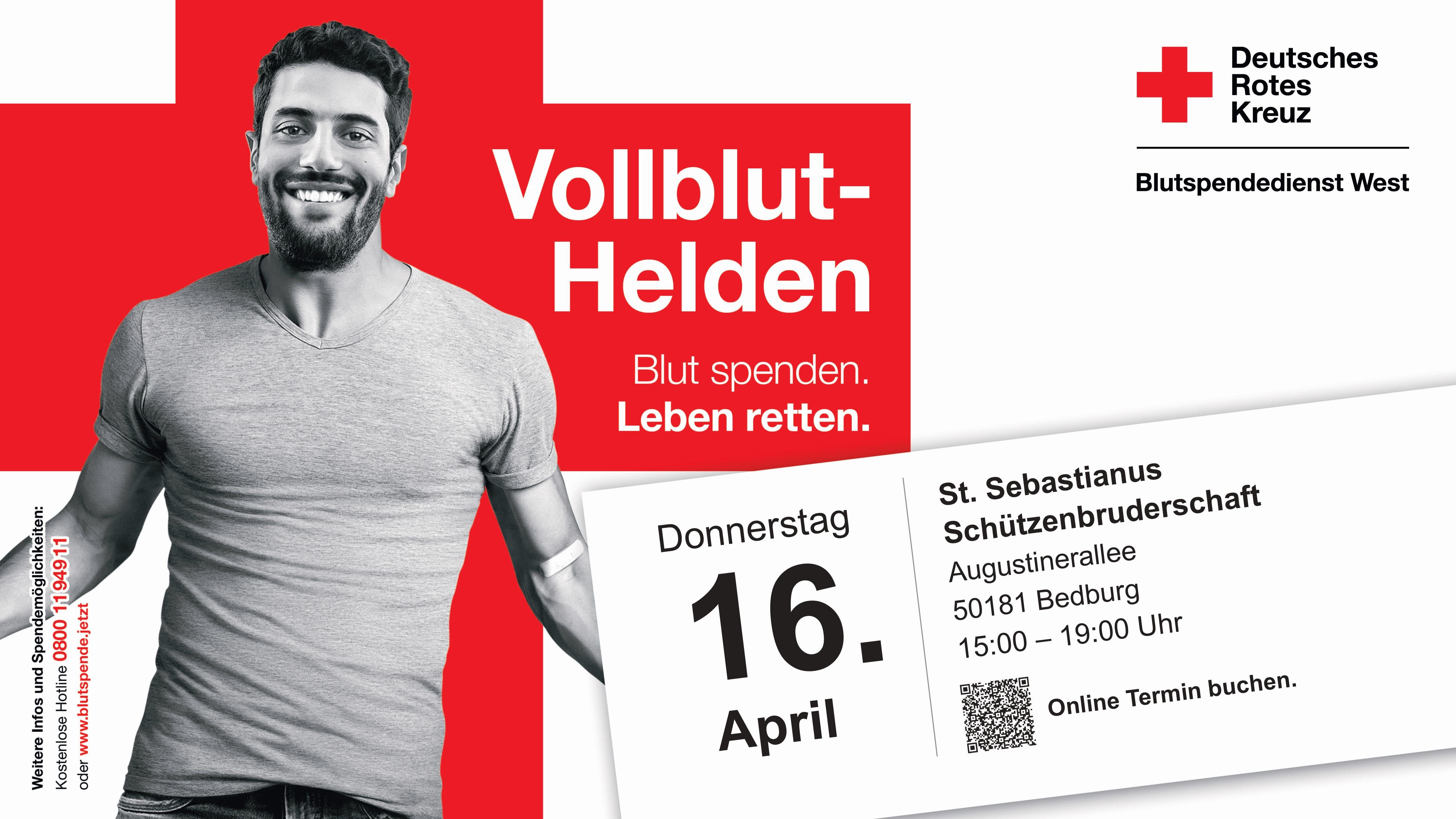 Das Deutsche Rote Kreuz bietet an nachfolgenden Tagen im ehemaligen katholischen Pfarrheim, Augustinerallee, von 15:00 bis 19:00 Uhr die Möglichkeit zum Blutspenden an. Sollten Sie Blut spenden wollen, dann müssen Sie im Vorfeld einen Termin für die Tage reservieren. Dies ist auf der Website des DRK-Blutspendedienst West möglich. Hier werden Sie über kurzfristige Änderungen informiert oder können ganz bequem Ihren Termin buchen.