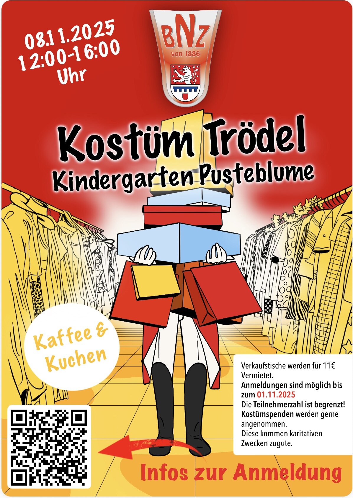 Die Anmeldungen nehmen wir unter kostuemtroedel@bnz1886.de entgegen. Bei Fragen stehen wir euch unter dieser E-Mail Adresse gerne zur Verfügung. Ansprechpartner sind Gabi Moll & Tine Dresen.