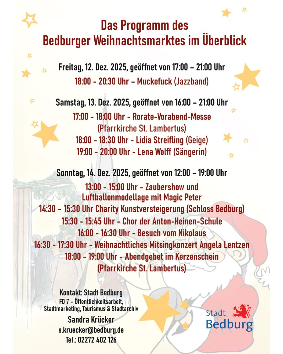 Das Programm des Bedburger Weihnachtsmarktes im Überblick: