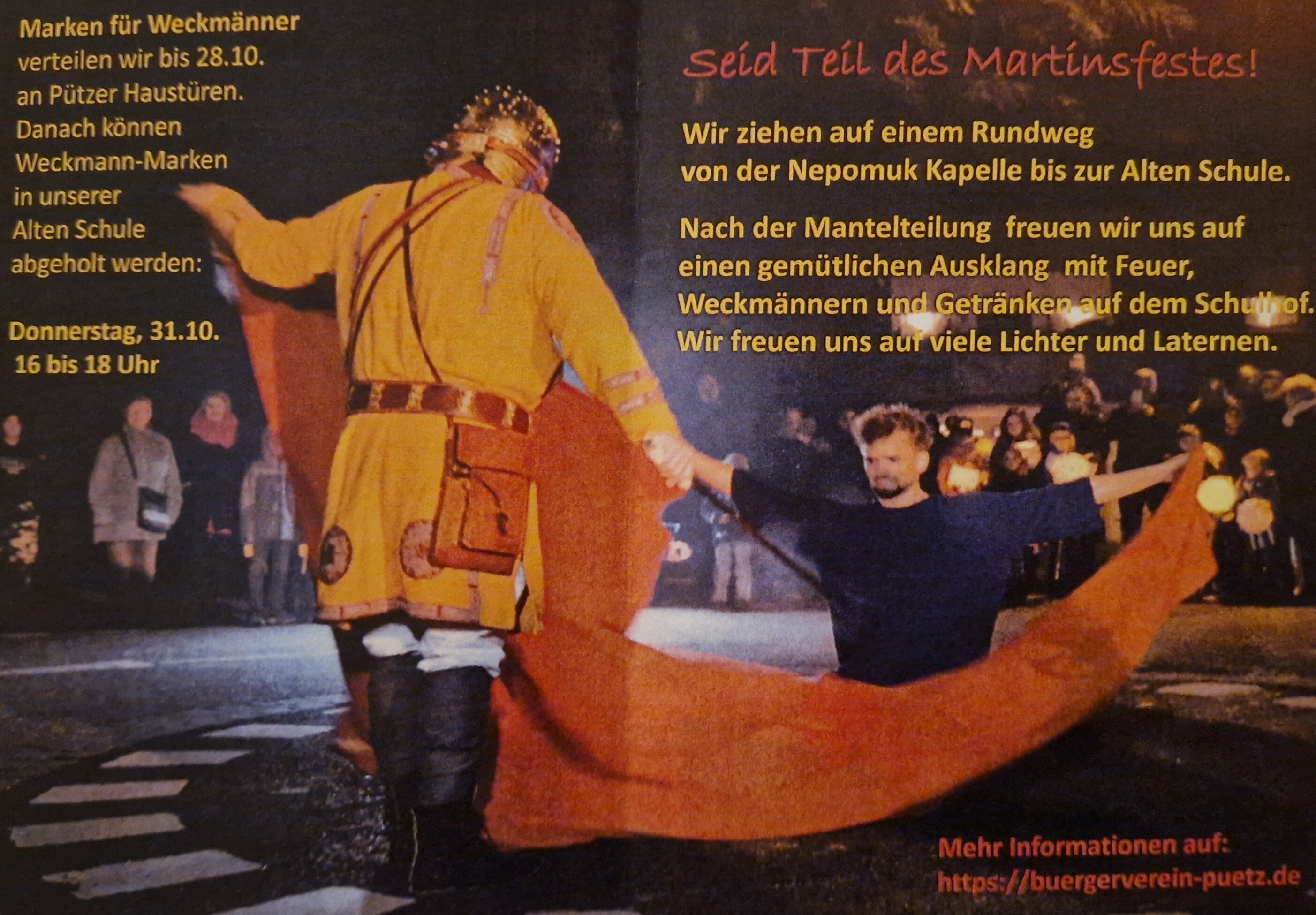 Nach der Mantelteilung freuen wir uns auf einen gemütlichen Ausklang mit Feuer, Weckmännern und Getränken auf dem Schulhof. Wir freuen uns auf viele Lichter und Laternen.