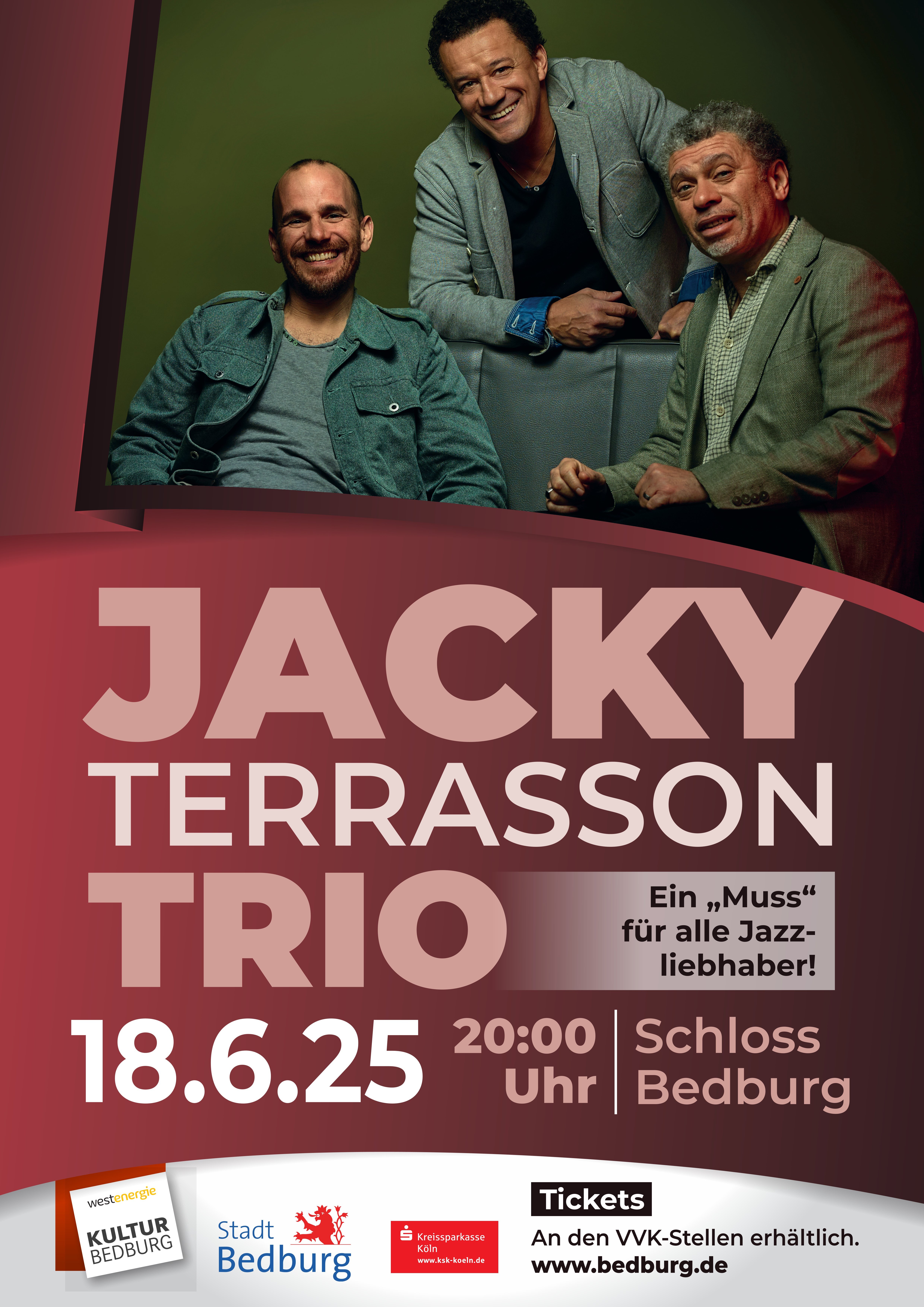 Am Mittwoch, dem 18. Juni 2025 präsentieren Jacky Terrasson (piano), Sylvain Romano (double bass) und Lukmil Perez (drums) ab 20 Uhr auf Schloss Bedburg ein Konzert voller Jazz.